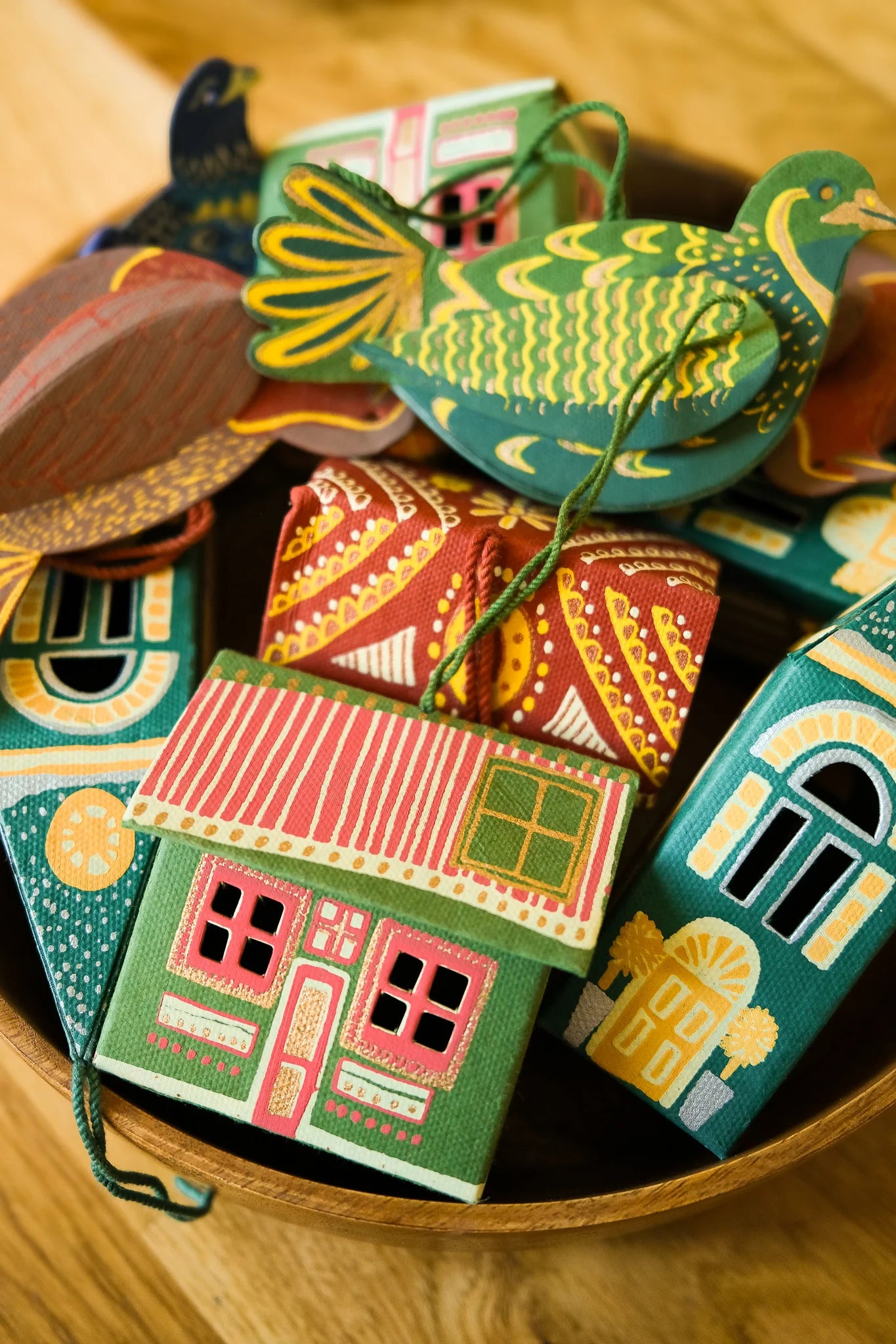 Bring a touch of Scotland to your home with this charming Scottish Bothy Screen-Printed Board Decoration. Handmade from 100% recycled paper, this sturdy ornament features a beautifully detailed bothy design, screen printed on both sides by skilled artisans in Jaipur.