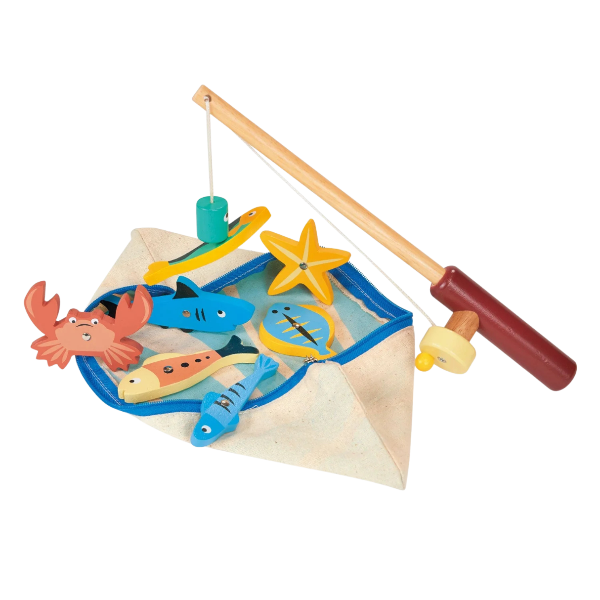 • Includes 1 wooden fishing rod with magnetic end and 7 magnetic sea creatures: starfish, crab, shark, flat fish, herring, cod and mackerel