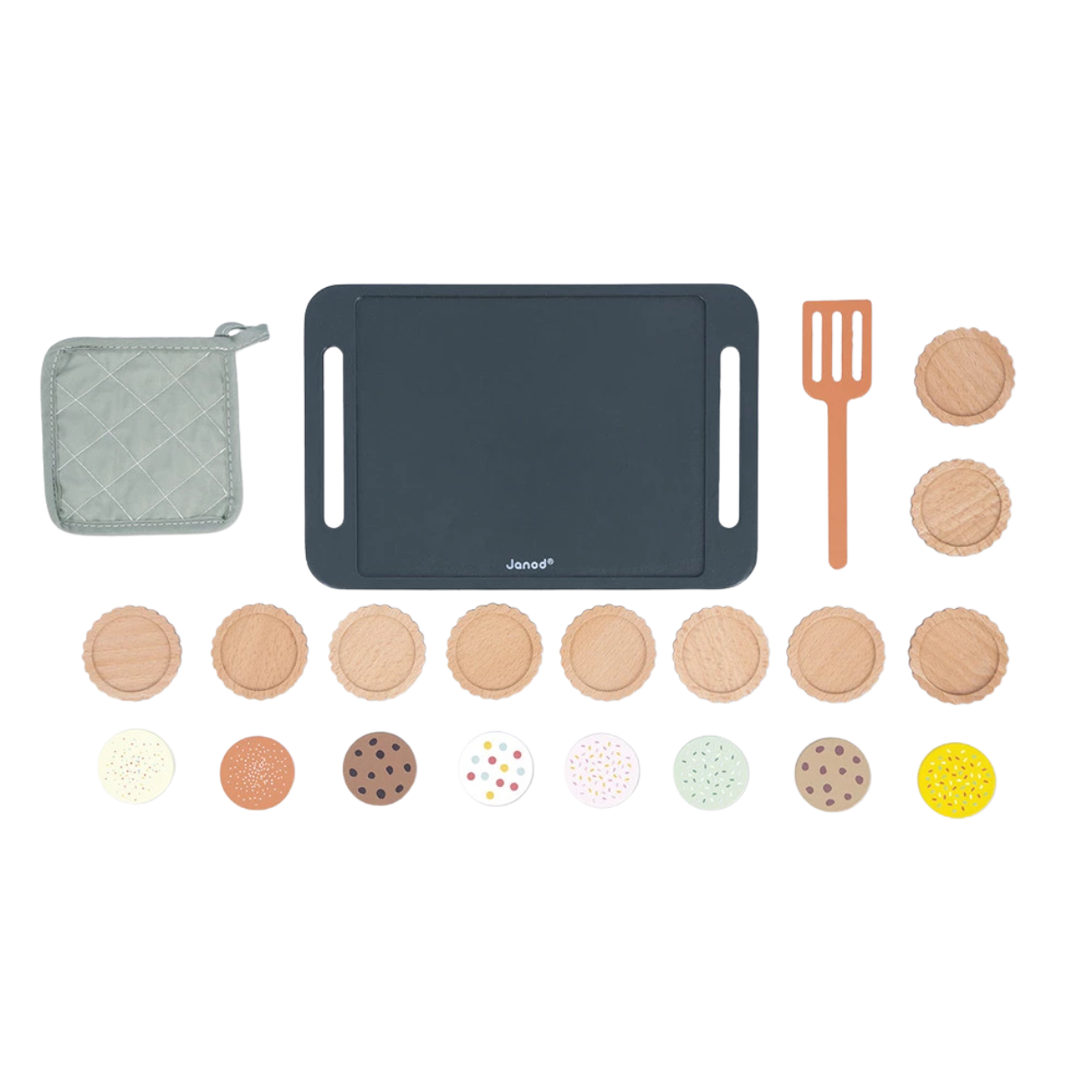 Ready, set, bake! Little pastry chefs can mix, match and bake to their heart’s content with this delightful wooden cookie workshop — the perfect recipe for imaginative play.