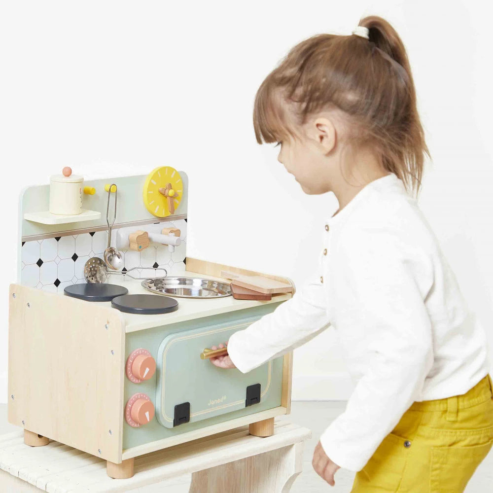 Dinner’s nearly ready! This charming wooden kitchen invites little cooks to roll up their sleeves and get creative. With its compact size and classic design, it’s the perfect addition to any play space — ideal for stirring, sizzling and serving up endless imaginary feasts.
