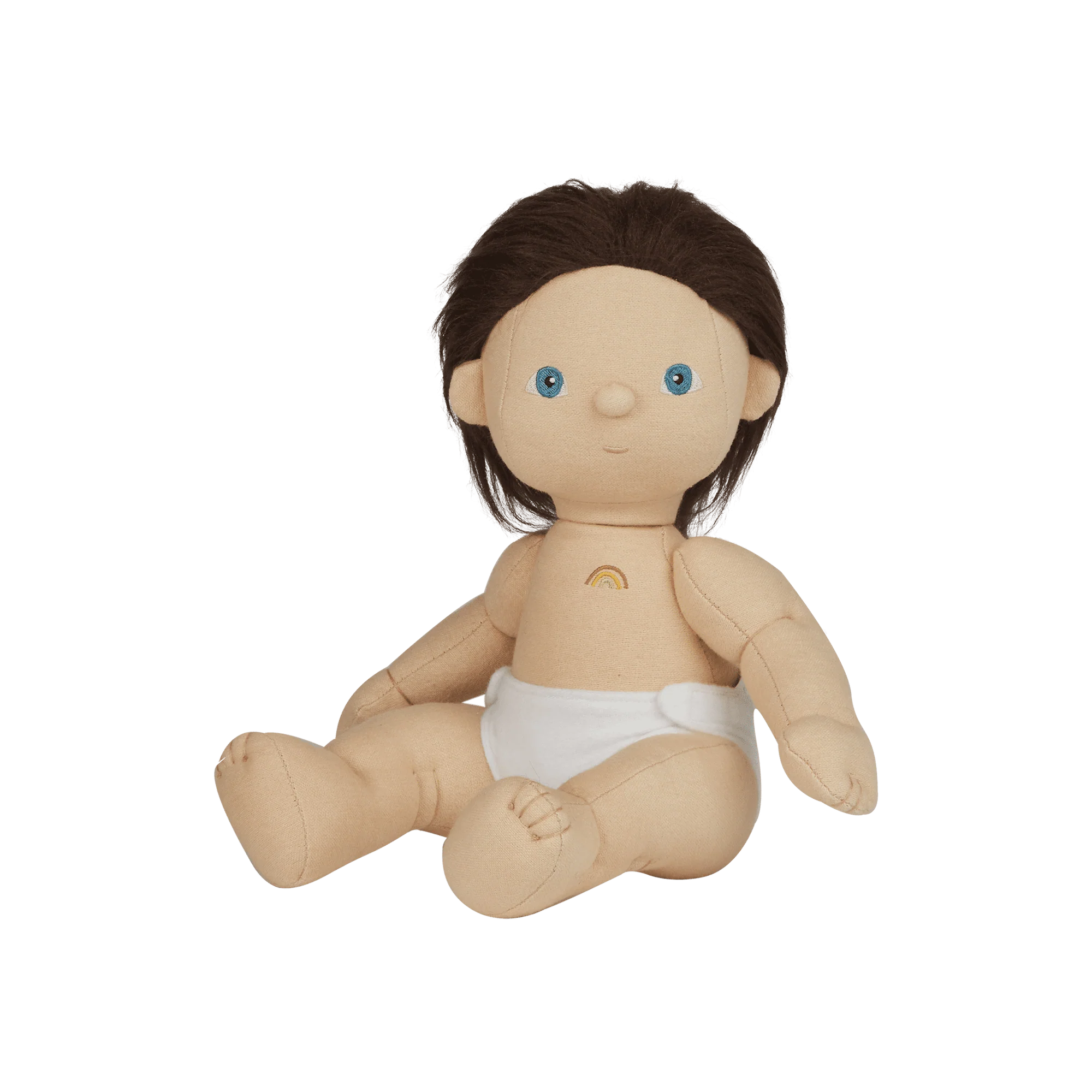 Meet the marvellous Dinkum Dolls – lovable, huggable companions ready to join your little one on every adventure. With posable arms, legs, and head, they can sit, stand (with shoes on!), snuggle, and sleepover. Made from the softest cotton and detailed with sweet embroidered features (including a tiny rainbow over their heart), these dolls bring warmth, comfort, and imagination to playtime.
