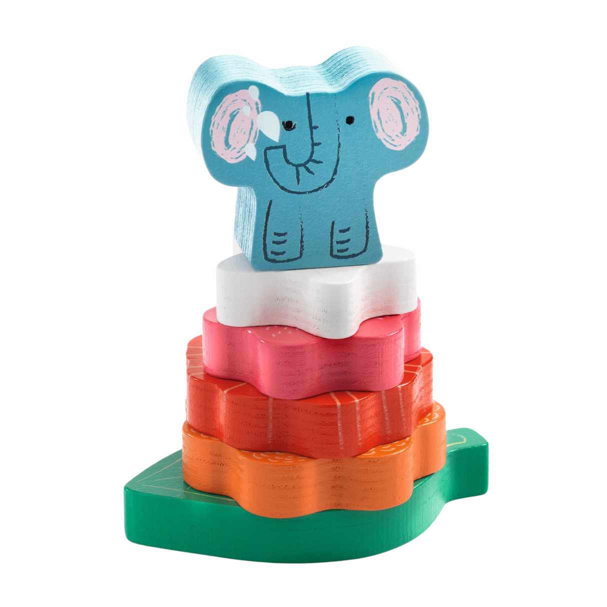 This beautifully designed stacking game helps develop hand-eye coordination and fine motor skills. The wide, easy-to-grasp pieces are perfect for toddlers, and the cheerful elephant topper adds a fun finishing touch.
