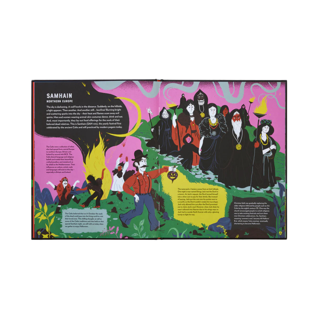 Welcome to the spookiest (and most fun!) book of celebrations from around the world. From Halloween and Día de Muertos to Obon, Mari Lwyd, and many more, this fascinating book uncovers 21 festivals that honour spirits, ancestors, and the supernatural. With vibrant illustrations and playful yet respectful text, children will delight in discovering how cultures across the globe celebrate the mysterious and the magical.