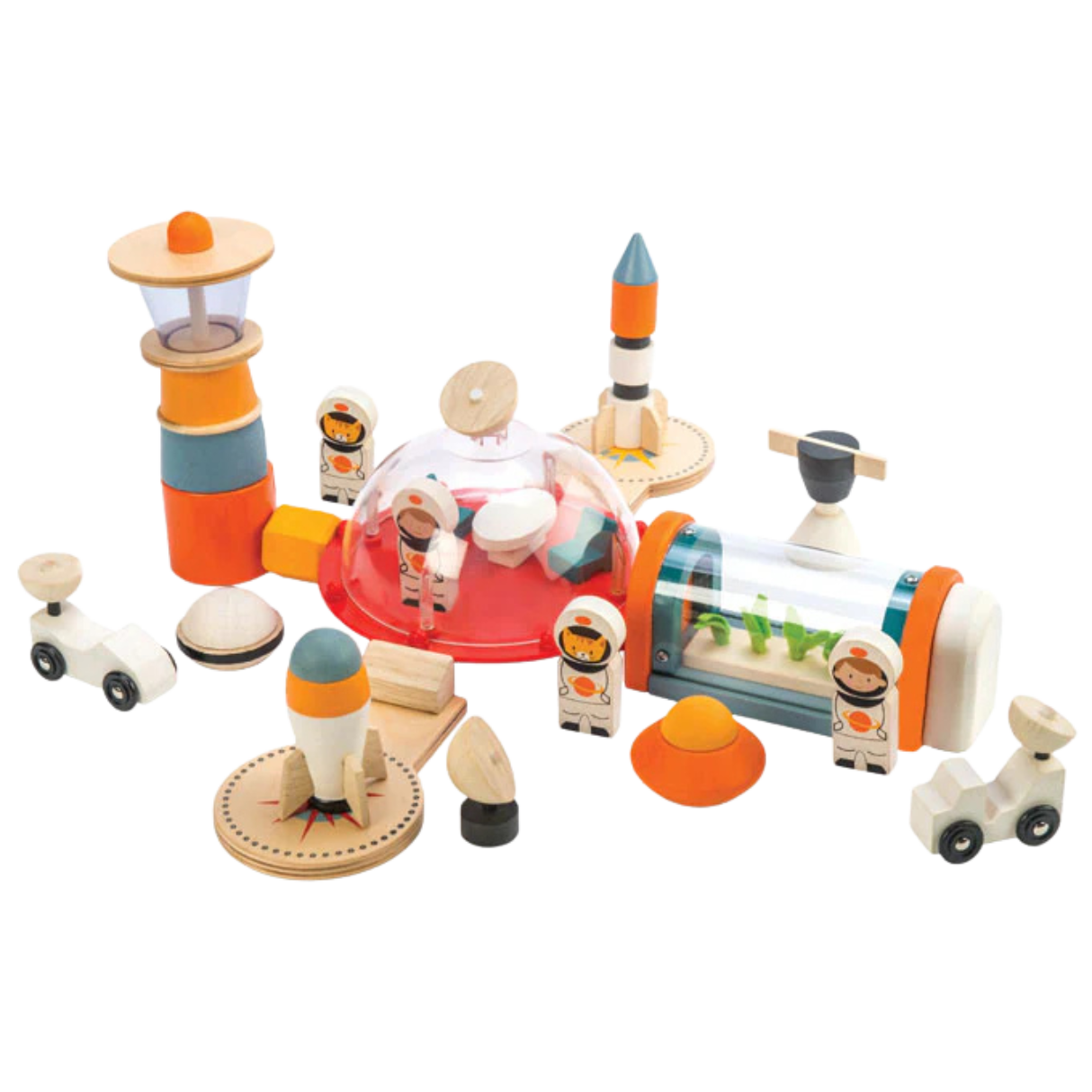 Blast off into adventure with the Life on Mars set by Tender Leaf Toys! Budding astronauts can explore distant galaxies, communicate with base camp and zoom around in their UFOs — all from their very own wooden space station.