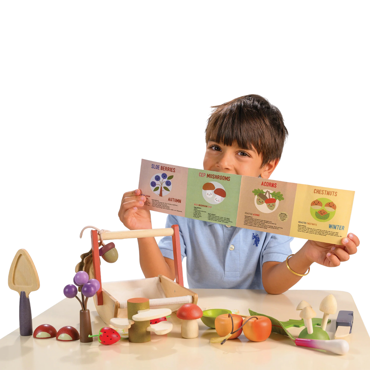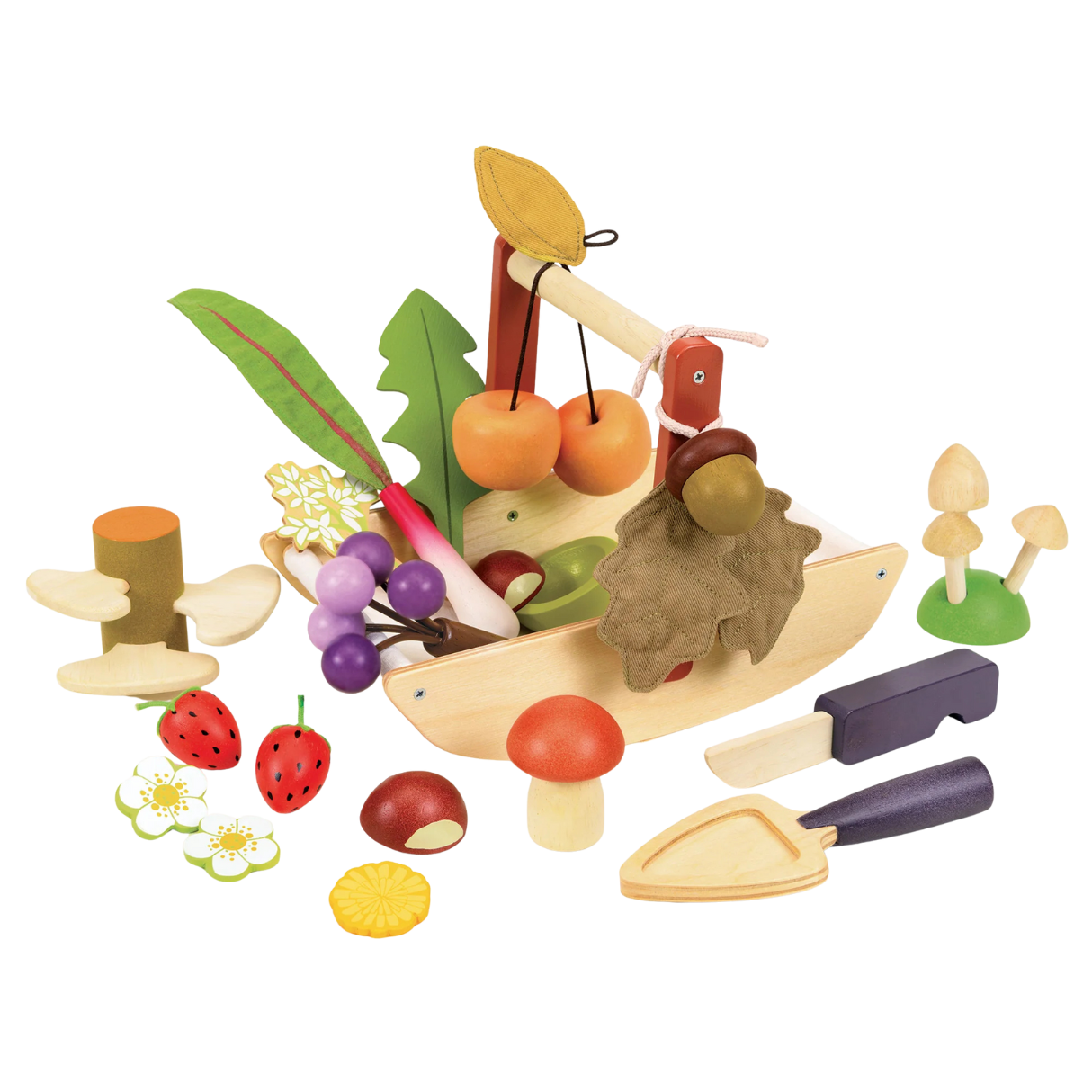 Step into the great outdoors with the Wild Wood Foraging Trug! Bursting with beautifully crafted wooden treasures, this nature-inspired play set invites little explorers to gather, discover and imagine their own woodland adventures.