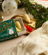 A delightful festive gift featuring two cheeky white chocolate mice and two pieces of white chocolate cheese, all tucked inside a beautifully illustrated green matchbox. A playful treat that’s as charming as it is delicious.